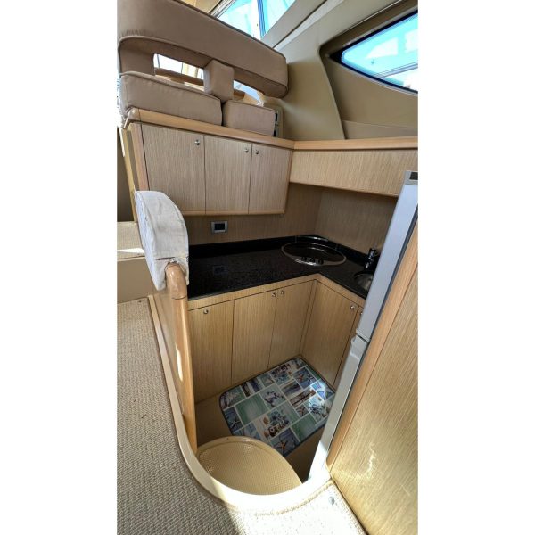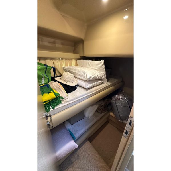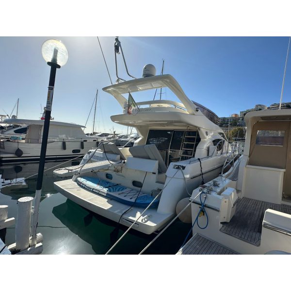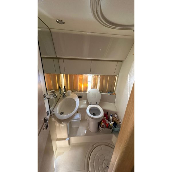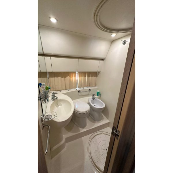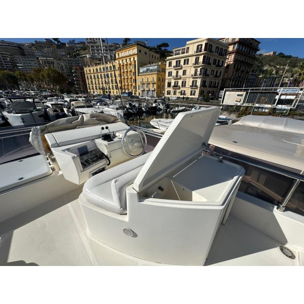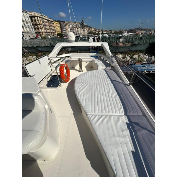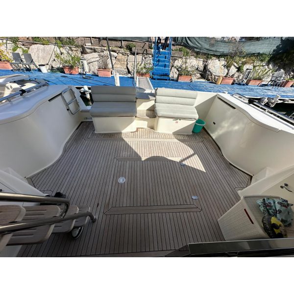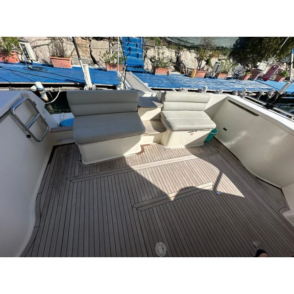cabina marinaio, passerella idraulica, gruppo elettrogeno Mase, aria condizionata, pilota automatico, antenna tv sat, generatore Kholer 9 Kw, cuscineria completa, radar, eco, elica di prua, manette elettroniche, salpa ancora, vhf, gps, pozzetto in teak, lavatrice