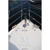 Aggressivo e raffinato, sportivo e grintoso, con linee e soluzioni di design sofisticate e aerodinamiche. È questa la prima impressione che si ha dell’Azimut 62. Su questa barca, com’è ormai tradizione nella produzione Azimut, le finestrature laterali, ampie per conferire la massima luminosità agli interni, riescono a caratterizzare in modo determinante il layout esterno, sia per la forma sia perché trattate a specchio. Il flying bridge appare estremamente filante, aerodinamico, oltre che caratterizzato un roll bar rialzato e posizionato centralmente. Inoltre, è dotato di prendisole, zona living modulabile, bar, con stazione di governo a sinistra. Il pozzetto è caratterizzato dalla presenza della passerella centrale, da un divano poppiero con accesso all’ampia e luminosa cabina marinai. Soluzioni estremamente funzionali rendono gli interni dell’Azimut 62 totalmente vivibili e personali. Infatti, al di là dell’estrema bellezza dell’insieme e degli arredi, scelta armatoriale di utilizzare il wrapping per dare un tono più moderno alla dinette e cucina, gli interni sono ricchi di particolari che, in tema di fruibilità, fanno la differenza. Il salone può essere sfruttato in due modi: con divani contrapposti oppure con divano a sinistra e mobile multi funzioni a dritta. L’area pranzo, con tavolo componibile al momento dell’utilizzo, può ospitare fino a otto persone. In cucina, un bel ripiano può servire sia da piano da appoggio che da passa vivande. La posizione del matrimoniale nella cabina armatore è obliqua, per una maggiore fruibilità del locale che, comunque, sfrutta l’intero baglio dello scafo a prua troviamo la cabina ospiti VIP con il proprio bagno en-suite e cabina armadio ed infine sulla dritta troviamo la cabina ospiti con bagno dedicato.