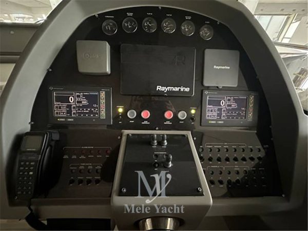 Angolo barra, Bussola, Comando motori elettronico, Computer di bordo, Contametri catena, Ecoscandaglio, GPS, Pilota automatico, Plotter con antenna GPS, Radio VHF,