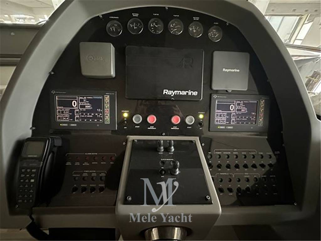 Allarme motore, Ancora, Autoclave, Batterie, Caricabatterie, Doccia esterna, Elica di prua, Flap elettrici, Hard top, Impianto antincendio, Indicatori Flaps, Lavandino nel Pozzetto, Luci di cortesia, Passerella, Piattaforma, Pompa di sentina automatica, Pompa di sentina elettrica, Pompa di sentina manuale, Pozzetto Teak, Presa 220V banchina, Presa acqua banchina, Salpa Ancore Elettrico, Scaletta da bagno, Tavolo pozzetto, Tromba, Winch tonneggio di poppa, Altoparlanti, Antenna Satellitare TV, Aria condizionata, Boiler, Clima reversibile, Cucina, Cuscineria completa, Cuscineria di poppa, Cuscineria di prua, Cuscineria Pozzetto, Digitale Terrestre, Forno, Frigorifero esterno, Frigorifero interno, Impianto acque nere, Impianto TV, Microonde, Pavimento interno in legno, Piastra in vetroceramica, Prese interne 12v, Prese interne 220v, Riscaldamento, Stereo, TV, WC marino elettrico