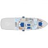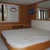 La cabina VIP a prua, con un letto matrimoniale e armadi ampi. La cabina ospiti dispone di letti separati